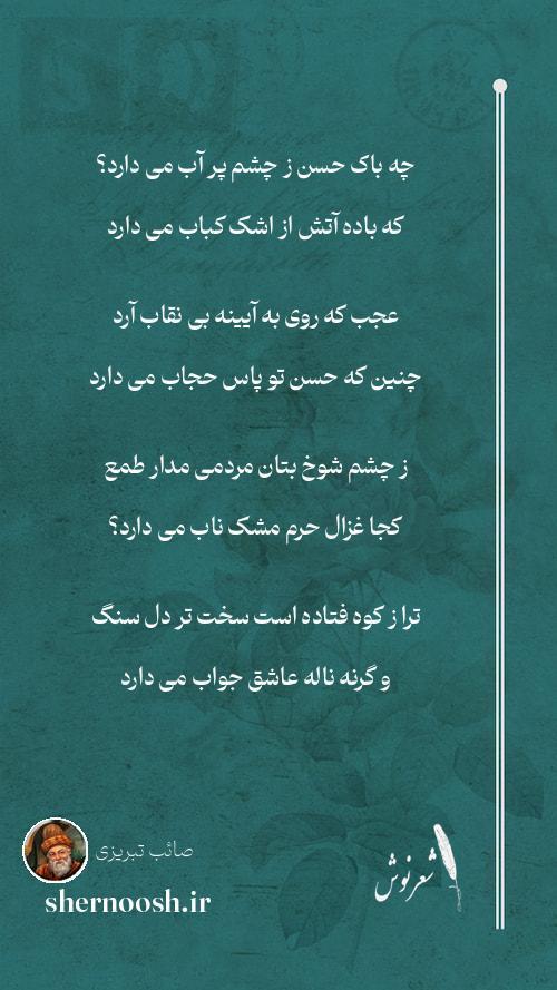 1 چه باک حسن ز چشم پر آب می دارد؟ که باده آتش از اشک کباب می دارد