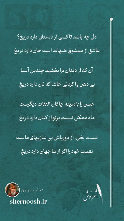 1 دل چه باشد تا کسی از دلستان دارد دریغ؟ عاشق از معشوق هیهات است جان دارد دریغ