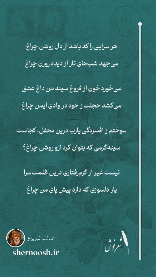 11 در شبستانی که گردد کلک صائب شعلهریز چاک سازد جامه فانوس را بر تن چراغ