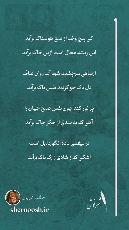 9 صائب سخنی کز دل بی مغز تراود دودی است که از بوته خاشاک برآید