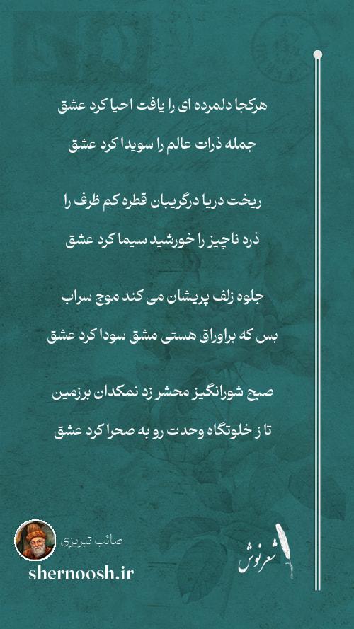 1 هرکجا دلمرده ای را یافت احیا کرد عشق جمله ذرات عالم را سویدا کرد عشق