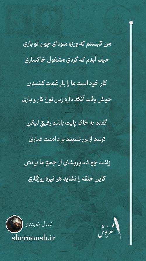 9 گر دست من بگیری گردد قلک غلامت مه چون کمال گیرد آرندش اعتباری