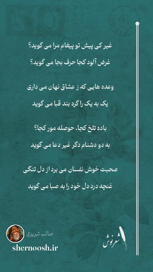 1 غیر کی پیش تو پیغام مرا می گوید؟ غرض آلود کجا حرف بجا می گوید؟