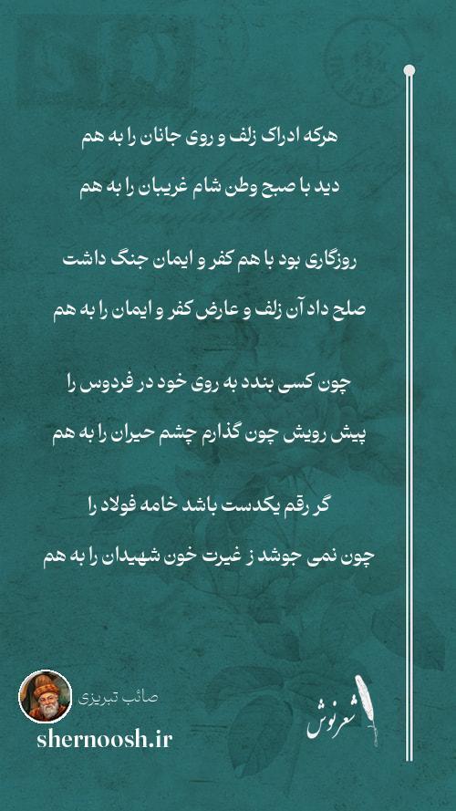 4 گر رقم یکدست باشد خامه فولاد را چون نمی جوشد ز غیرت خون شهیدان را به هم