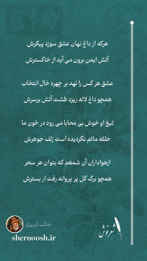 1 هرکه از داغ نهان عشق سوزد پیکرش آتش ایمن برون می آید از خاکسترش