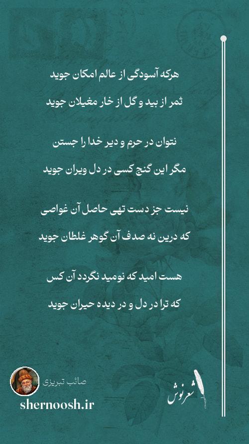 1 هرکه آسودگی از عالم امکان جوید ثمر از بید و گل از خار مغیلان جوید