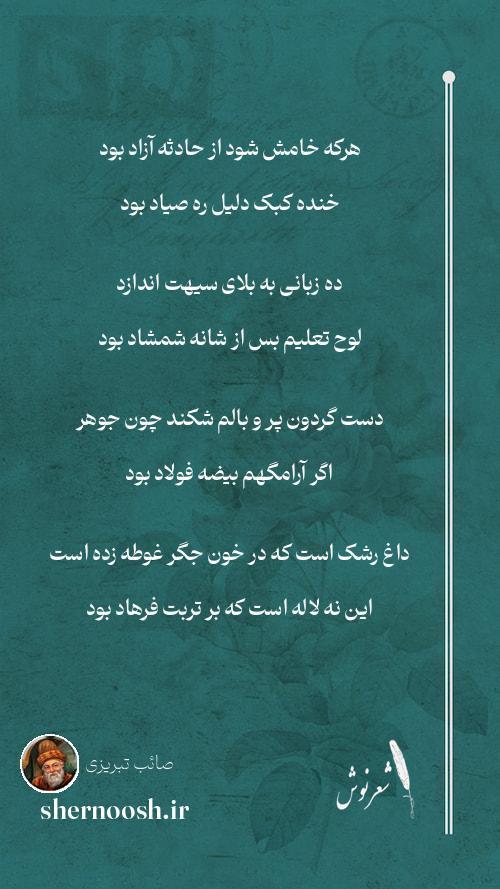 1 هرکه خامش شود از حادثه آزاد بود خنده کبک دلیل ره صیاد بود