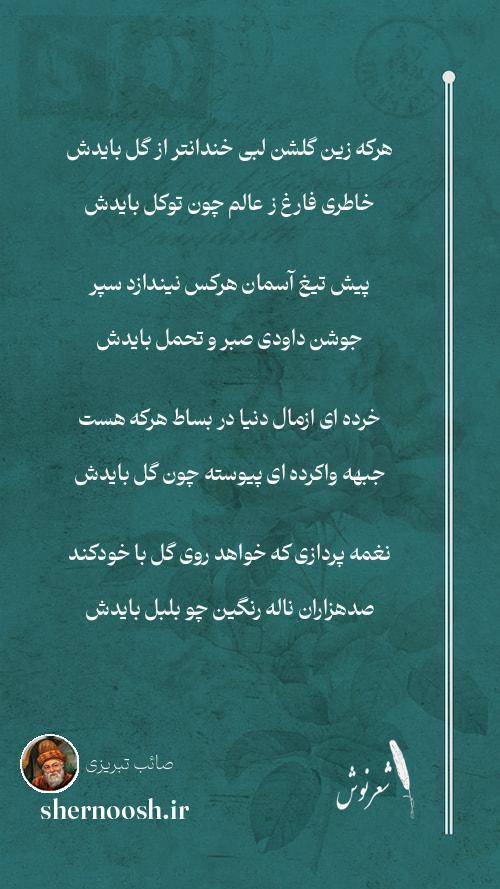 4 نغمه پردازی که خواهد روی گل با خودکند صدهزاران ناله رنگین چو بلبل بایدش