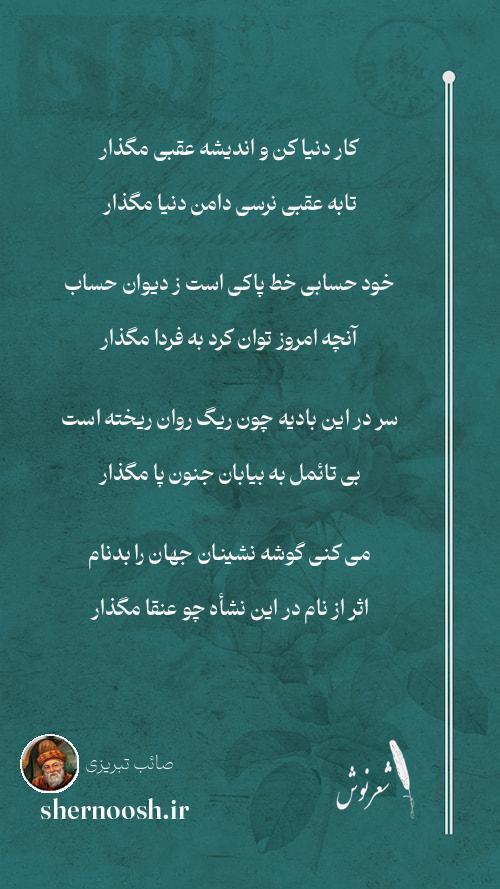 2 خود حسابی خط پاکی است ز دیوان حساب آنچه امروز توان کرد به فردا مگذار