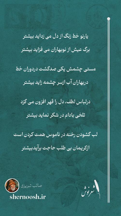 1 یارنو خط زنگ از دل می زداید بیشتر برگ عیش از نوبهاران می فزاید بیشتر