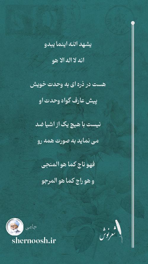 7 پاک کن جامی از غبار دویی لوح خاطر که حق یکی ست نه دو