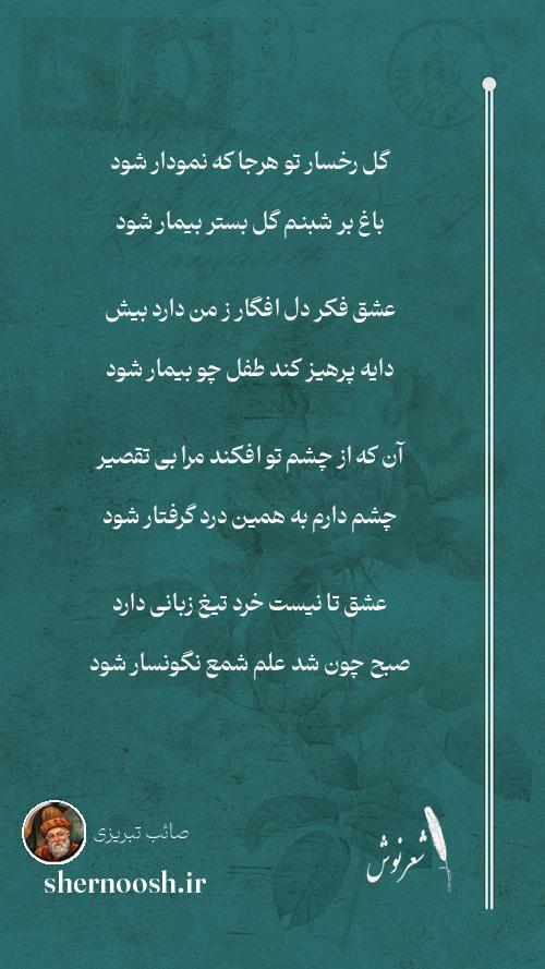 1 گل رخسار تو هرجا که نمودار شود باغ بر شبنم گل بستر بیمار شود