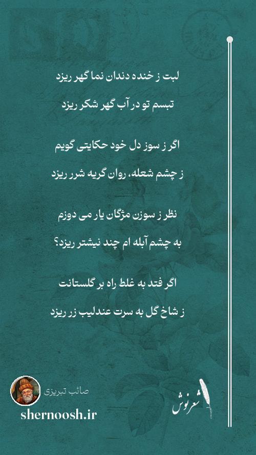 1 لبت ز خنده دندان نما گهر ریزد تبسم تو در آب گهر شکر ریزد