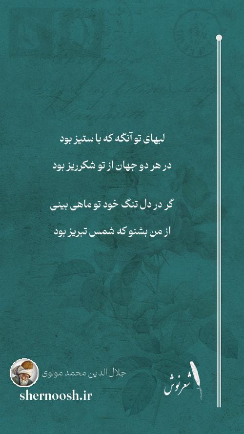 1 لبهای تو آنگه که با ستیز بود در هر دو جهان از تو شکرریز بود