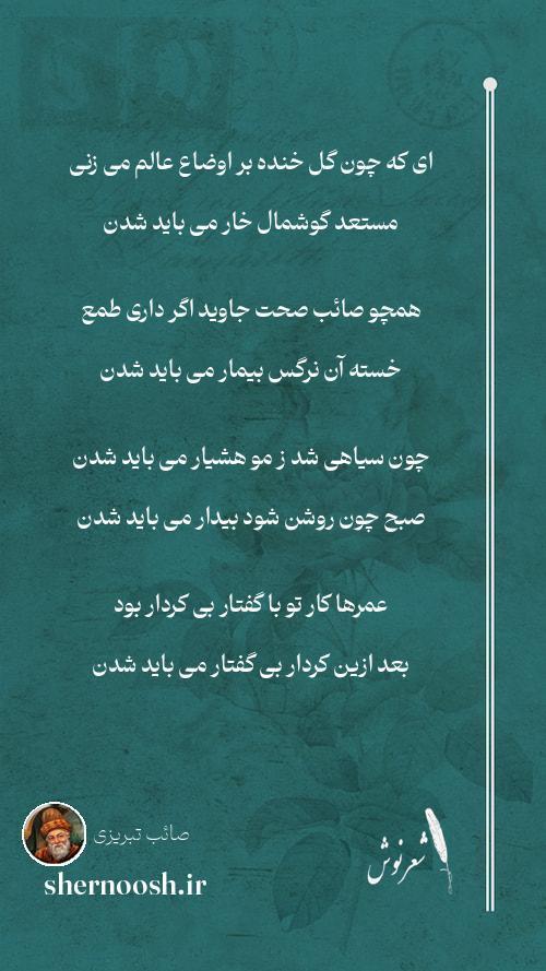 2 همچو صائب صحت جاوید اگر داری طمع خسته آن نرگس بیمار می باید شدن