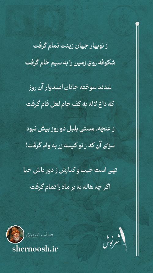 1 ز نوبهار جهان زینت تمام گرفت شکوفه روی زمین را به سیم خام گرفت
