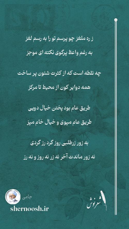 7 چو موج تفرقه جامی تورا گذشت ز سر برابر است اگر یک گز است اگر صد گز
