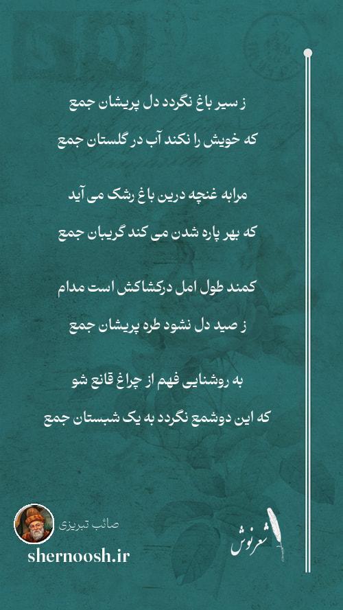 12 به آفتاب جهانتاب می رسد صائب چو شبنم آن که کند دل درین گلستان جمع