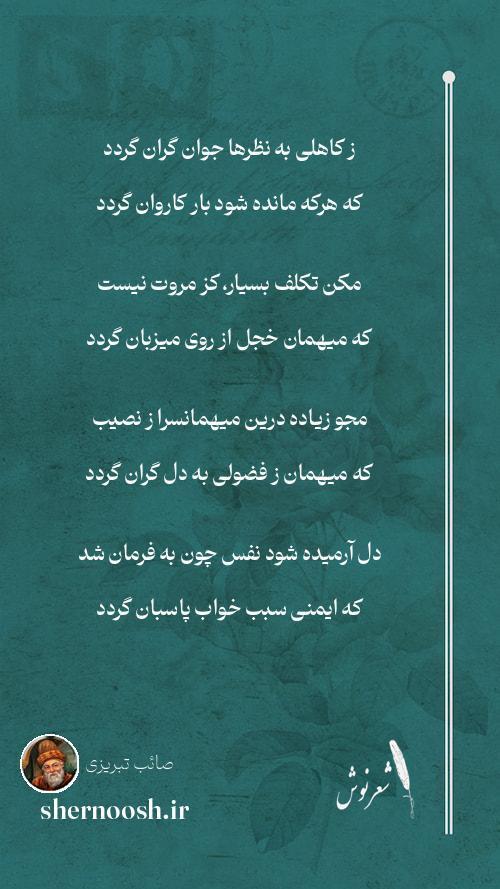 13 مکن ز سختی ایام رو ترش صائب که مغز، نرم ز زندان استخوان گردد