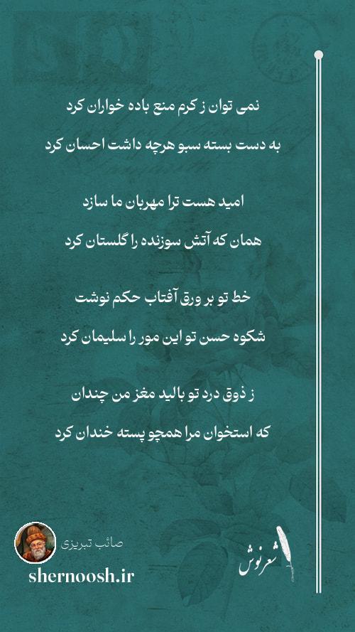 3 خط تو بر ورق آفتاب حکم نوشت شکوه حسن تو این مور را سلیمان کرد